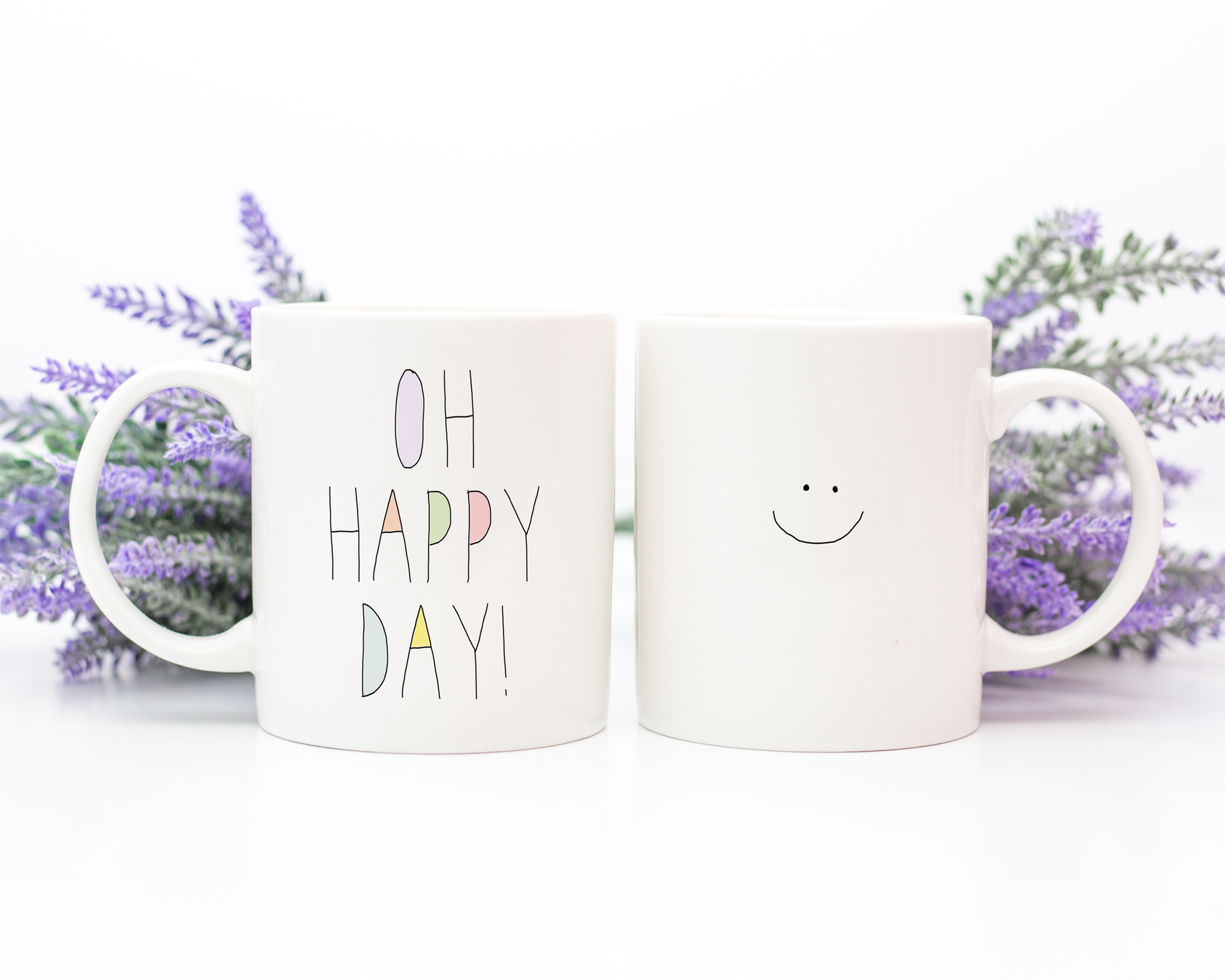 OH HAPPY DAY! is on the front of this mug with a big smiley happy face on the back.