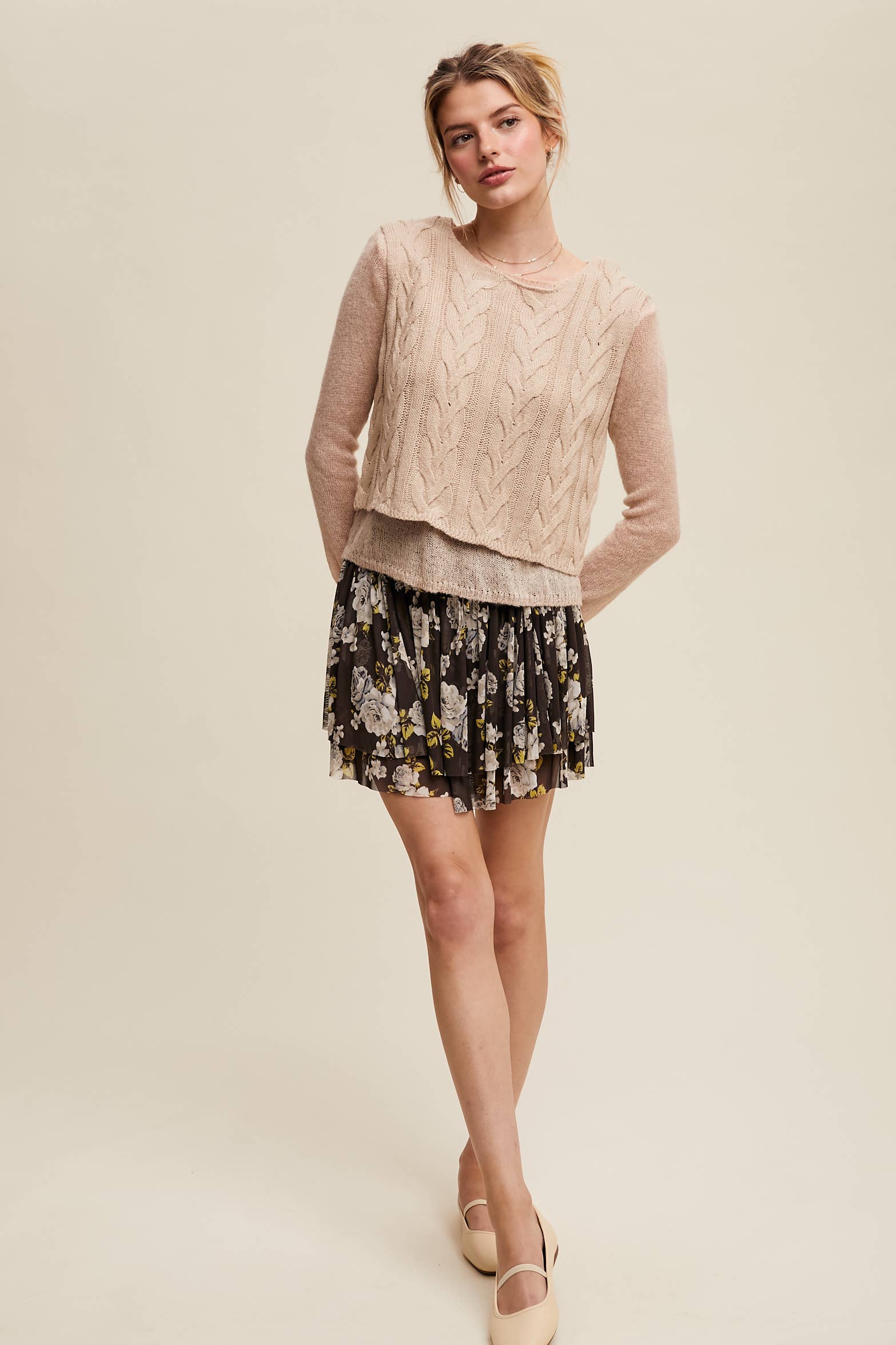 Delicate Floral Print: Features a romantic allover floral print in soft tones of white and yellow against a dark background for a bold yet feminine look. - Flattering Smocked Waistband: